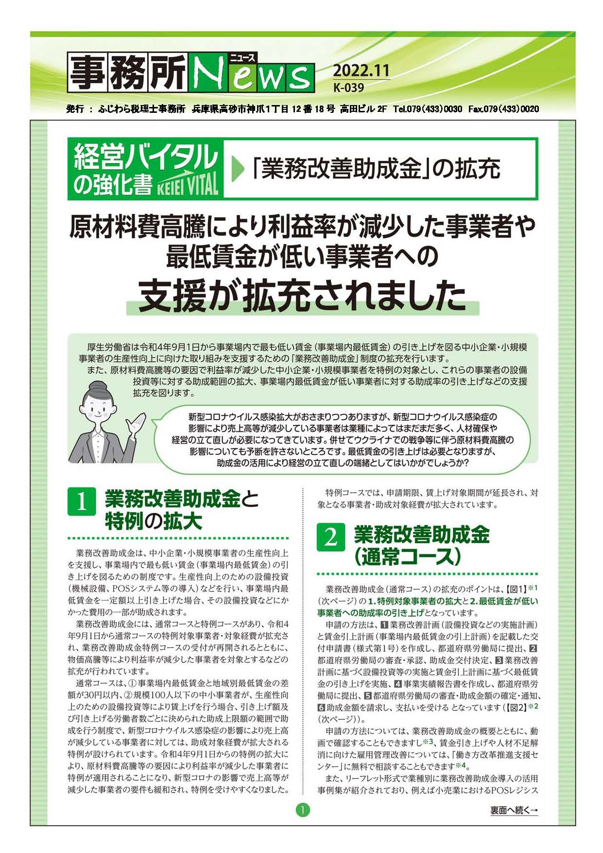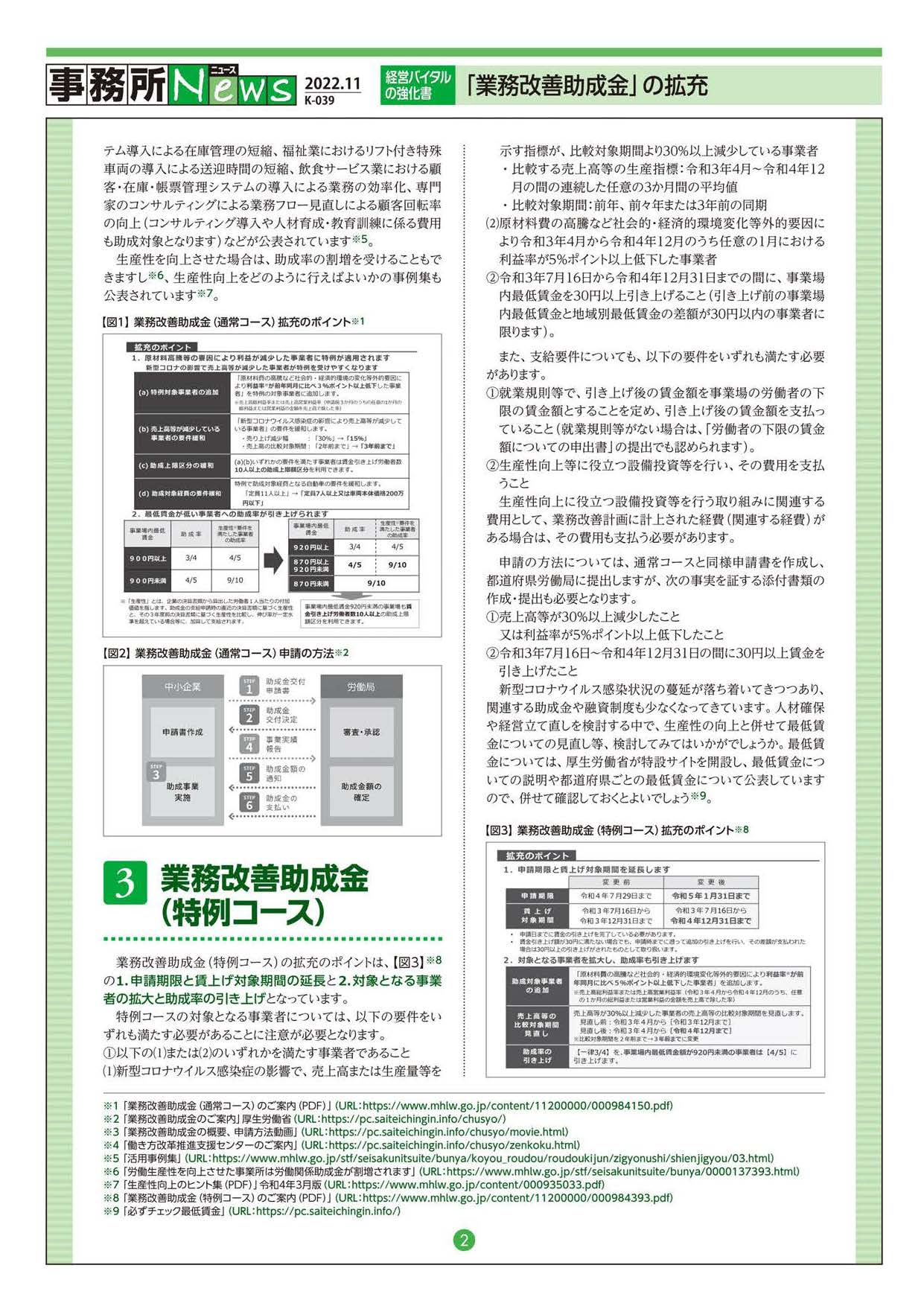 原材料費高騰により利益率が減少した事業者や最低賃金が低い事業者への支援が拡充されました