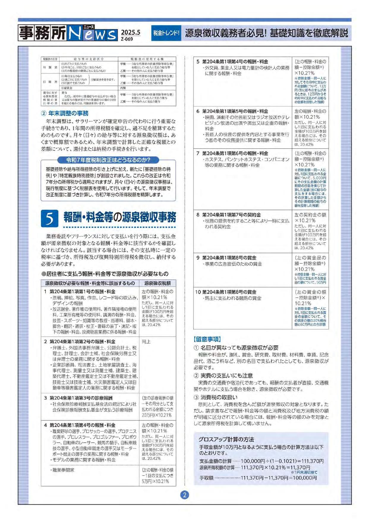- 源泉徴収のポイント報酬・料金等の源泉徴収事務