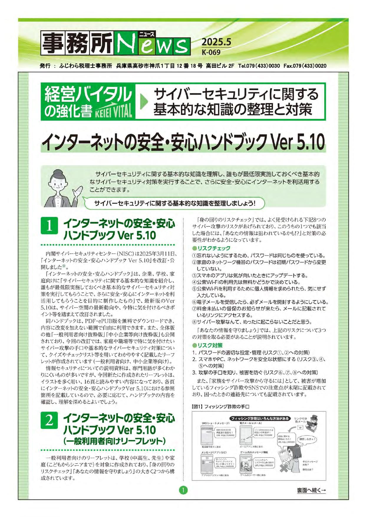 - サイバーセキュリティインターネットの安全・安心ハンドブック (中小企業等向け)